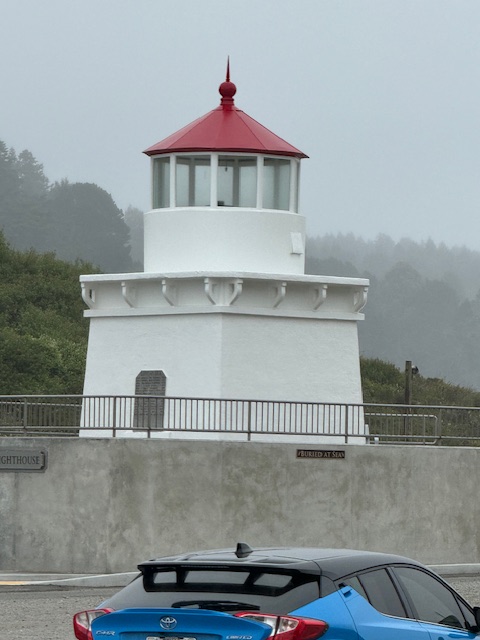 Trinidad Beach is near the Trinidad lighthouse, and we soon found a miniature one that is a memorial. There was no sign showing how to reach the real one. We later learned it was a hike up the big rock and over to the other side. You cannot see the Trinidad lighthouse from the bay and the town!