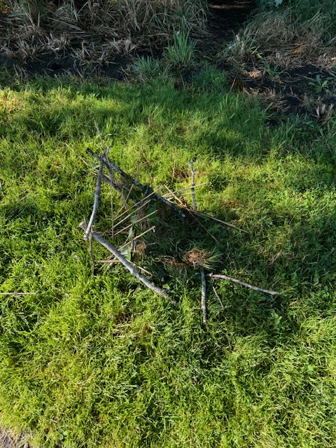 Someone had built a model of a lean too in the grass using local items. I remember having to do this in school, but ours was full-sized, and we learned how uncooperative green branches and leaves could be. It brought back memories of 6th-grade school lessons on survival in the woods (yes, the Laingsburg Schools of my memory were not good in college prep, but we learned survival skills). I suspect we don’t do this anymore in public schools. I still carry survival stuff in Air Volvo.