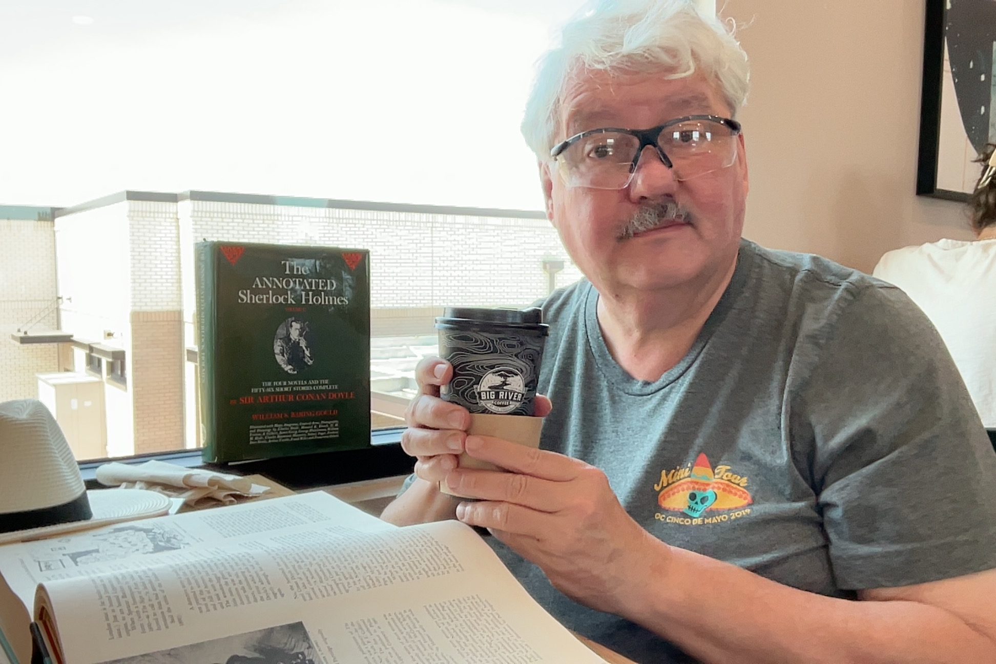 After this, I headed to Big River Coffee, got an Americo with a shot of caramel syrup, and worked on my next writing project. I have the Annotated Sherlock Holmes by William Baring-Gould, which you can find in used bookstores. It has two large volumes for just a few bucks (my copy from Powell’s was the seventeenth reprinting of the 1968 work). There is a newer work, but it runs as high as over $100 for the two or three-volume set. I took Post-it arrows and marked each interesting section of Mr. Baring-Gould’s book.
