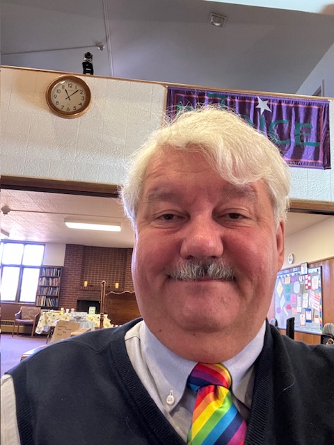 Air Volvo, still shiny from the car wash on Friday and nearly fully gassed from Friday’s fill-up, faced surprisingly heavy and slow-moving traffic on TV Highway. I had to redirect to Farmington Road, which was nearly empty (usual for a Sunday morning), and soon arrived safely. The Pride Progress flag on the church side entrance was flapping nicely in the light breeze (Z and I replaced the older and fading Pride and slightly broken pole a few weeks ago).