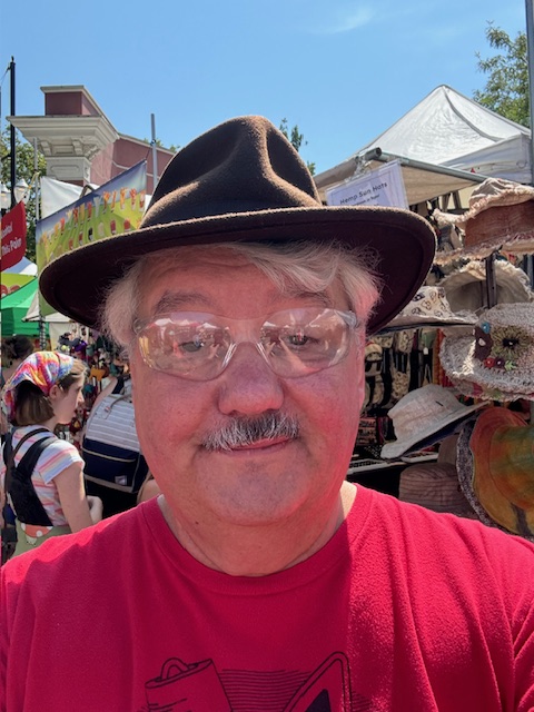 I clean up and dress and find a text from Misha. They are heading out. I was thinking 11, but they started sooner. I board Air Volvo and soon head to Portland’s Saturday Market. Traffic is light, but more than one would expect for a weekend. I soon cross NW Portland to Burnside Street to a small lot for paid parking (about $11 for the day) just across from Voodoo Donuts in Skidmore—a very sketching area at night.