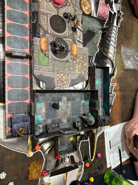 While I can’t tell our story here as the material is purchased, I did notice our 15th-level characters are powerful now and slamming through things. I am temporarily changed into a T-Rex and bite and chew for a while. We discover a new use for the deep travel well we used to climb as we throw bad guys down it. I also fight some things alone and use my light blast and high armor class to make short work of them. I have a spell duel with the big bad, and he keeps dispelling my blocking spells, but this delays him enough that we escape. Our group, only four players, plays fast, and our goal is to escape with the treasure and goodies and leave the bad guys empty-handed, not necessarily destroyed.