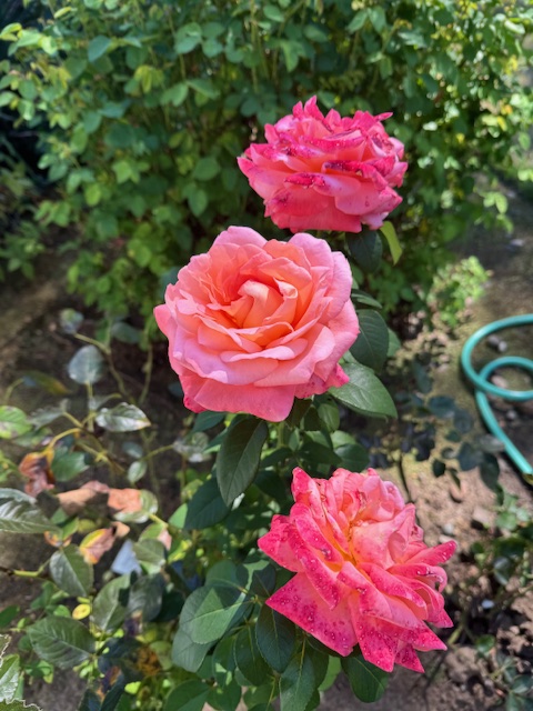 My roses are happy. The rain, followed by the burning and bleaching California sun, is heaven for a rose. I am getting bloom after bloom.