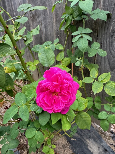 Souvenir du Président Lincoln is still flowering, but these are smaller, heat-reduced blooms. I am still happy to get a late flower from the rose. The Bourbon rose shows no black spot issues. It is a surprisingly good choice for the Greater Portland Area.