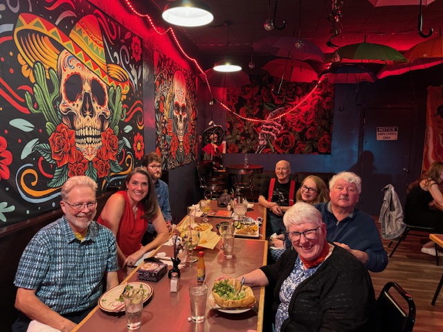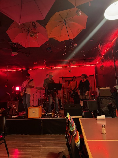 Dondrea, with Z, picks me up, and we take her vehicle to Forest Grove. We soon arrived, as the traffic was light. I buy the first round: a virgin Piña Colada for Z and a spicy margarita for Dondrea. Dondrea buys dinner. The rest of the church crowd soon shows up. The music soon starts, and the set mixes oldies and some newish alternate rock. The band and singers are excellent, and Andrew plays the banjo and some of his stuff. It was excellent.