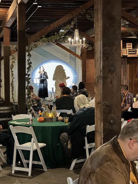 I talked with a local author, Cody Goodman, about AI. Later, he led us in two summoning rituals held in Rossi Farm’s ghost town section. The second one was longer and more funny, including a prayer to stop any criticism of the ritual. I chatted about food, travel, and AI stuff. There is finger food, including the ubiquitous, for catering, meatballs in a red sauce, and country fall desserts like donut wholes and pumpkin pie.