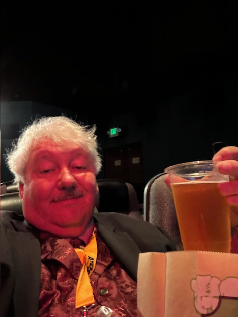 We finished the game with only partial success, which is usually all you can hope for. We broke up, and soon I found solace in pizza nearby. The Festival did not start until 6 and was always late, so I had time for pizza. Some of my fellow agents located pizza, too, and we chatted. Soon, I was in line to enter the Hollywood Theater in the shorter VIP line, shaking hands with friends not seen in a year. This theater, built in Portland in the 1920s, is pretty but violates many safety rules, and one must be careful. I did not fall, but I did need to be more cautious than my last visit (before the brain surgery).