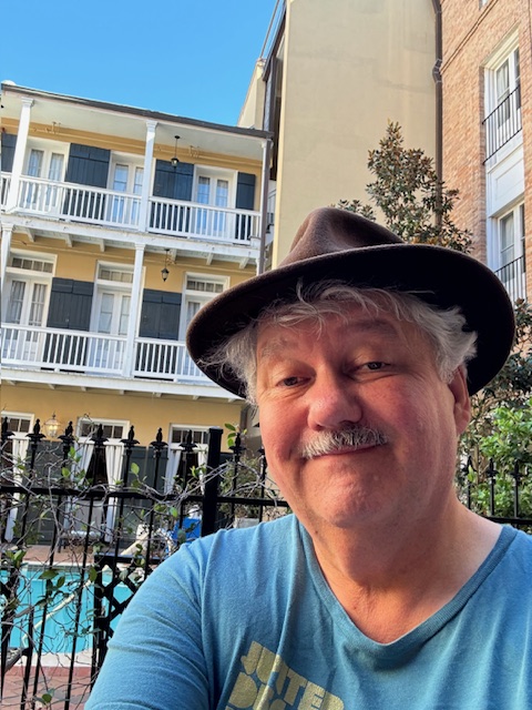 Now, at 3:45, I am back at the hotel, Cheatu Le Moyne, hoping the usual 4-ish release for my room will happen. Nope. Another walk. Bourbon Street is now starting to be loud, and there is music. The typical cover is a drink; my sleep-deprived self cannot afford that indulgence, and walking feels good. I found the European Jazz Club, a favorite and the secret home of the vampire bar Potions, and returned to my reportedly haunted hotel. On the way, I saw Chris again. He had just learned his room at another hotel was now ready (they call you), and thus, I realized I was not the only person facing this challenge. Chris is excited as it appears he was upgraded to a balcony and hurries off.