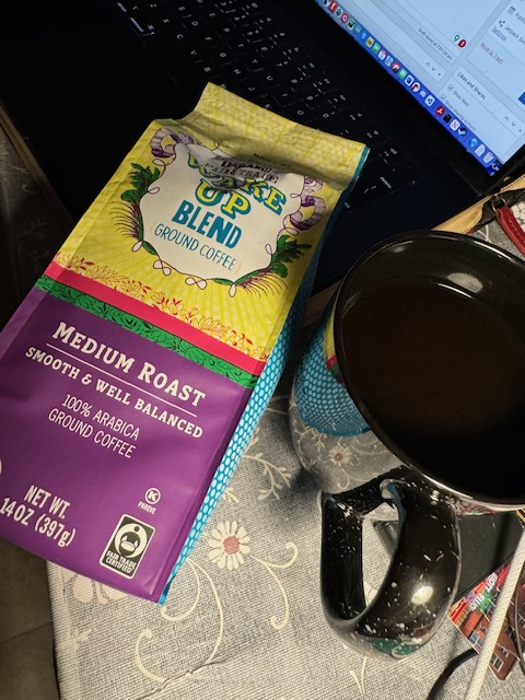 I managed to make liberal coffee this morning despite the time change, but today, I grabbed Trader Joe’s certified organic and fairly traded ground coffee and poured that into the French Press. It is dark and bitter, reminding you that it is a corporate product. Still, you can taste the Justice and Compassion for the fair trade certification with a hint, even in a corporate product, of Community. Hope is still there for a better world. In this election week, I recommend some liberal in your cup!