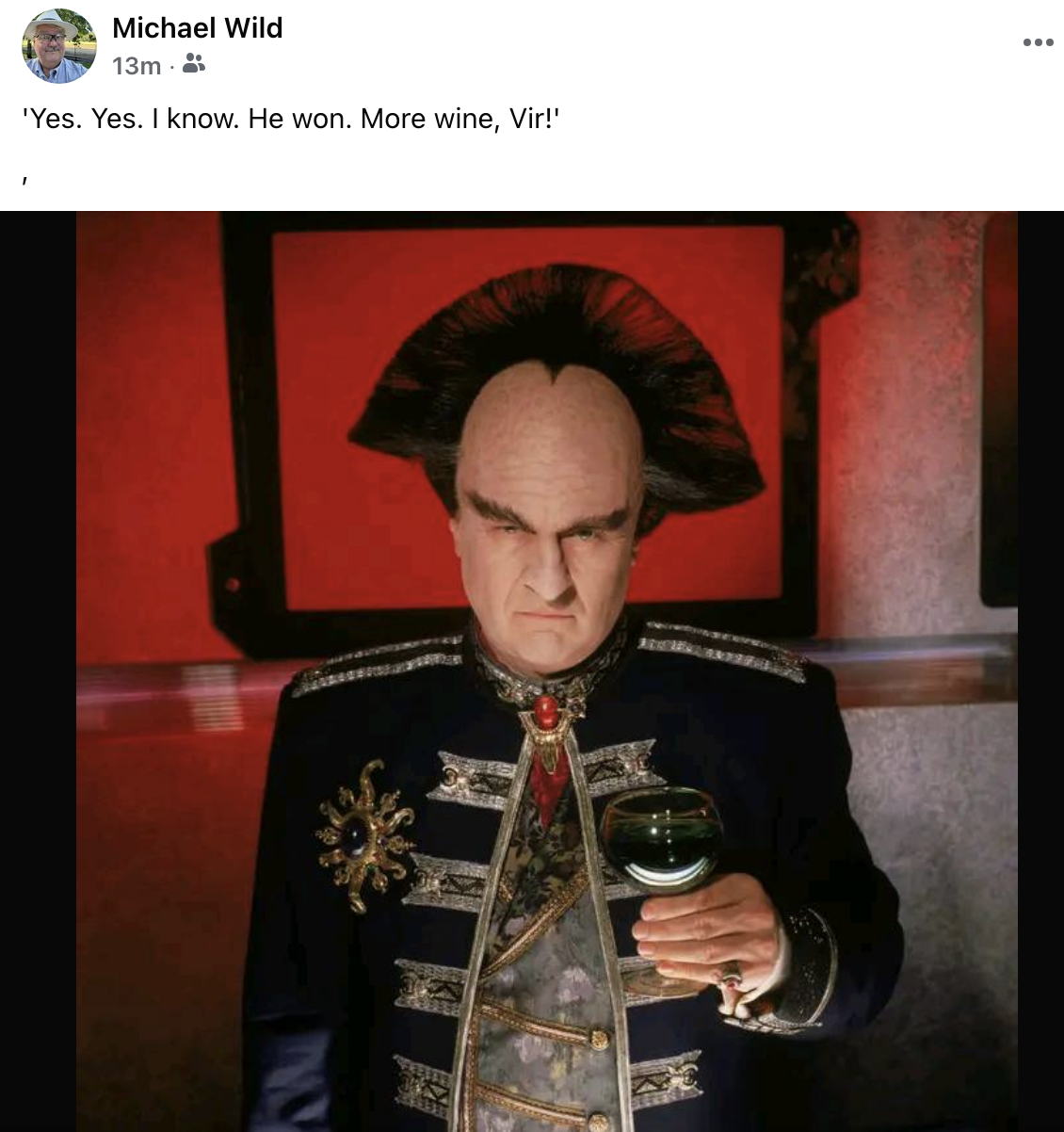 The old joke I taught to many computer professionals was the last words of a red shirt on Star Trek or the next victim in a horror flick, “What was that?” Yes, people would say the computer f**k up this and data disaster that, and all I would say in response is, “What was that?” Yes, watching the messages on my phone for Trump’s return, “What was that?” came to mind.