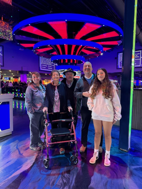 I washed off at the pool and then in my room. I redressed and headed back to Lansing Mall and the Zap Zone, which has a bowling, small go-cart, and gaming area. I arrived early, and an ill-omened fire truck, paramedics, and ambulance appeared. They completed their challenges, and Linda and Mom Wild appeared. Jesse and Meg were already inside waiting.