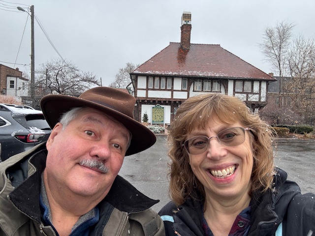 Deborah has dreamed of visiting the old pottery company in the USA in downtown Detroit, Pewabic Pottery. Today, we pull in, and we are enchanted. It is Friday, and they are open, and the work areas are open for us to walk through–only on Fridays; excellent. We marvel at the tiles and what they are known for, and the artisans explain their glazing process; we get to see the pottery items fresh from the kiln. We also watch the stamping of tiles using a more modern method. All interesting and fun. We saw stacks and stacks of older-style molds that we were told take a long time to safely de-mold. We toured their museum and enjoyed learning the history of the process and company since the early 1900s. We had a good time. We managed to resist buying a tile. Deborah dreamed of her house numbers done in Pewabec tiles (@ $42 a number) and looked at what that would look like. Maybe someday!