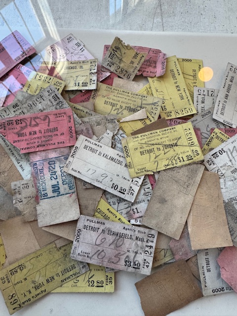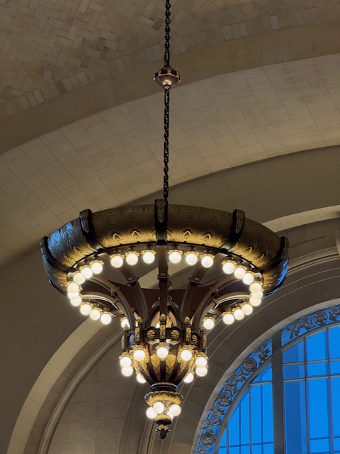 The building reminds me of Union Stations in Chicago and Washington, DC, except for no trains. The place looked terrific, and we took endless pictures, as did many. I bought a card and pen (the plastic pen for Liam, Deborah’s son, who loves trains) from the MC store. We also looked at the smaller shops interspersed with relics and documents from the MC. Bits of broken tile and stone, certificates, and even ticket stubs all brought back the days of trains. I did not see any blueprint versions for me to buy.