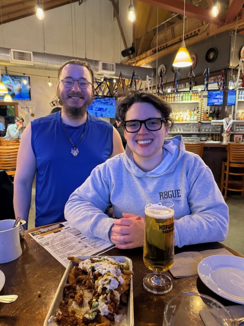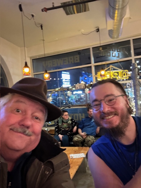 Mariah suggested dinner in Portland, and Corwin agreed. Air VW the Gray gets us through the slow-moving traffic of a Tuesday night. Again, the lane changing from the most left lane, across the lanes, to exit requiring everyone to slow down and let the driver through could be put to music, a slow waltz (maybe this by Dmitri Shostakovich). I did not know about the alternative parking at Hopworks, and we parked on the street a few blocks away. While Corwin thinks Air VW the Gray would be a target of car thieves, I was of the opinion that just trying to find how to put it in Drive would stop any would-be thief if they had some marvelous hack for the fob controlled access (I still have to stop and think how to do it now).