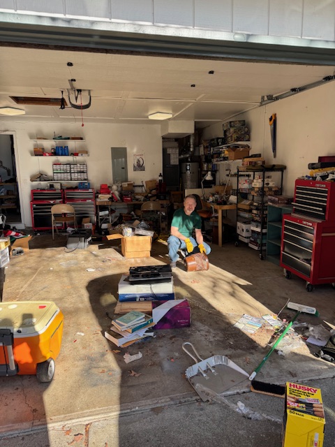 The goal was to eliminate the accumulation of stuff with the realization that much of it had not been used in five years (before the pandemic), meaning it was not really needed and should be tossed or taken to Goodwill. We took two loads of stuff in the EV to Goodwill (they would not take the office chairs that were peeling). Among the items were more of Susie’s clothing, which always makes me sad when we find it.
