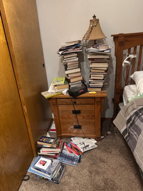 I stacked the books on the nightstands, removed the old clock radio, ordered an Echo Display to replace it, dusted and vacuumed, and got out the broom to chase away some cobwebs that had built up while I was not paying attention. The room looks a bit stark now, but I will move a few personal items in once I get it cleaned and sorted.