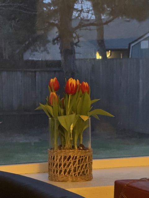 (We are back to gray skies. A little color in the house always helps, and tulips are my favorite)