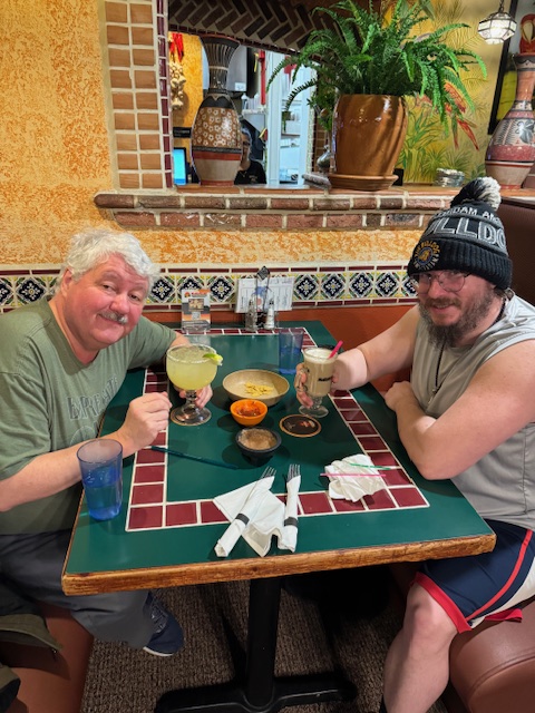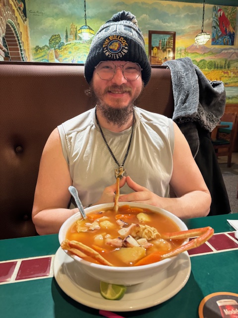 The living room and adjoining room are next, and soon, that carpet was cleaned, too. The laundry is folded and put away. Corwin drops by, and I agree to help him with an issue. We head to the local Mexican place. Corwin has the seafood soup while I have my usual and a house margarita with salt and on the rocks. We feel very comfortable there, and the staff knows us.