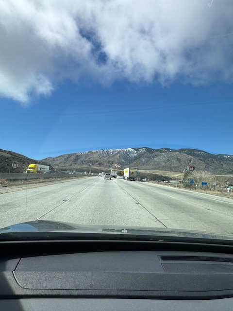 I see mountains and wonder if I am again crossing. Yes! It seems I am constantly climbing mountains. This time, it is 4,000+ feet and cold up there. It’s not freezing or snowing this time. I stopped at a rest area and topped off the EV to 80% for free (a 10% charge would not have got me there) while I used the facility. And it does not require YAA! Next time! It is cold and clear in the mountains outside of LA. It is lovely with the farms and then the mountains on 99 and 5. Glad I drove!