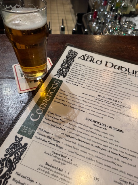 Deborah finds me at the pool at the end of her sessions. She had dinner plans at a most excellent Middle Eastern place, Ammatolí. Deborah has a great meal with some folks she knows. I head to the Irish place across from the convention center.