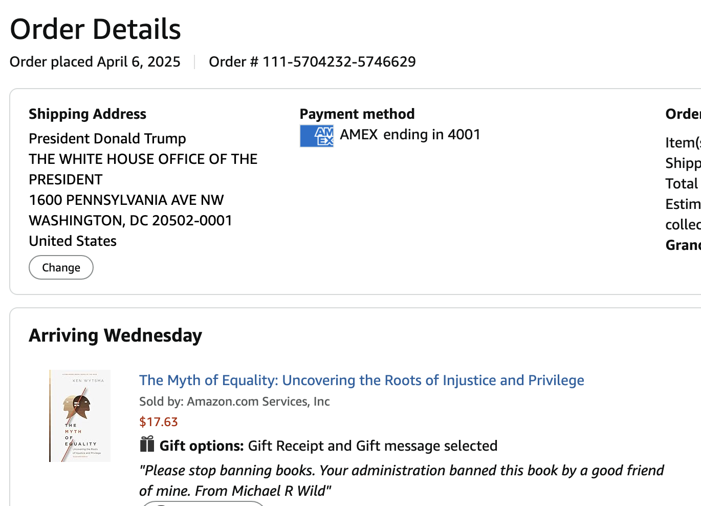 I have seen justification, of a sort, by folks supporting this. “You liberals pulled out religious texts and history books from libraries,” kind of statement. No, we did not (you can check with the Naval Academy–books were not banned by the Secretary of Defense in the previous administration, including the previous Trump and Bush presidencies). Liberals don’t ban books; instead, we don’t buy ’em or read ’em if we don’t like ’em.