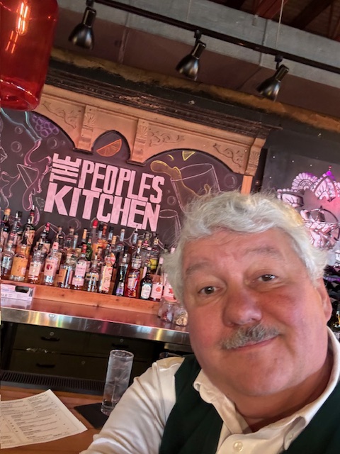 Next, I stopped by The People’s Kitchen, a high-end former food truck joint. It has a Mad-Max edgy decor, but the menu is high-end and imaginative. I sat at the bar. I was looking for something easy and soon had a delicious cup of soup, and they supplied a dessert at no charge. The drinks looked complex and likely expensive, but instead, I went for Diet Coke in a tiki glass as I did not want to nap today (my usual reaction to lunch drinks). I made the tip include the full price of the dessert and thanked them.