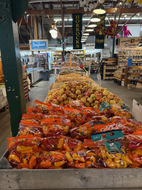 I thought about calling friends or family, but it is hard to enjoy much as the clock is ticking and I need to feel safe early at the airport. It was late morning, so I decided to see the fantastic farm/grocery store in Lansing: Horrocks Farm Market. My first impression was that it is almost out of Lansing near Holt. I found easy parking and walked in. It reminded me of many markets I have been to worldwide, but it smelled better, and there was just one vendor (and I could read the signs and understand the price without math). It brought back my recent memories of Eastern Market and the Olive Pit in California. I enjoyed walking through it and thought that next time, I would have to consider the hotel with a kitchen!