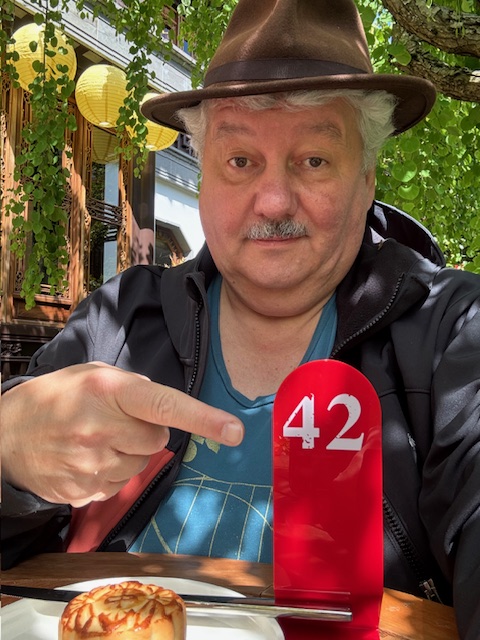 I had a moon cake with my tea (way too much sugar and carbs for me) and just enjoyed the peace in the garden by the little lake. I read my book, sipped tea, and munched on the cake. My number was 42, and I thought it a good choice.