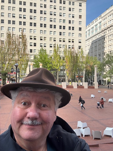 I wrote the blog, which took much of the morning. Deborah and I chatted by text and on the phone all through the day. Deborah is back to work. It was beyond 11 when I finished the blog, showered, shaved, dressed, and all that. I got cards in the mail in time for the mail person to get them. My mail was mostly junk on Monday. I boarded Air VW the Gray and took it to the nearby MAX station, boarded the Portland train, and read my Canadian-based crime/mystery book on my Kindle.