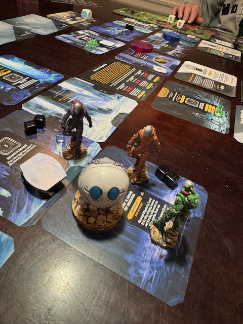 This was a continuation scenario and tough. I can say I got frustrated once. Cooperative games can get hard when folks disagree and the challenges get hard, but we managed to finish. It took all morning and into the afternoon. Yes, intense. This is a moderate challenge!