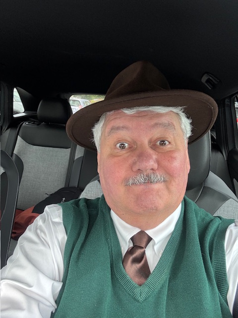 After I showered, shaved, and dressed, I tried something new. I put on suspenders under my sweater vest. I picked a brown silk-like tie from some forgotten wedding. I figured a chocolate-colored tie would fit the “Charlie and the Chocolate Factory” play at a local middle school. Z was playing Willy Wonka for the first time.