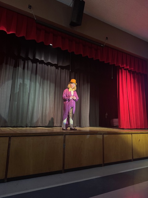 Willy Wonka’s part includes singing high and low notes, all slowly voiced. Z handled them well and was moving while she sang. The new mics helped. Instead of many props, much of the show required imagination, which I thought fit well with the source material. The material also gave solos to many characters besides Wonka and Charlie; I thought it an excellent middle school choice for a talented group.