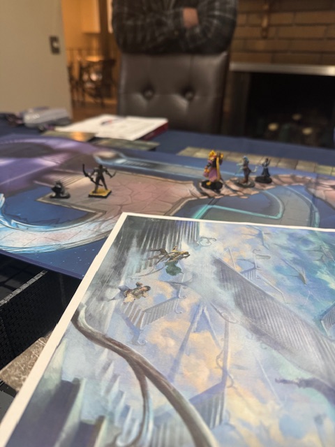 We next started on the new campaign, Quests from the Infinite Staircase. This is premade material, and Matt, our DM, was gifted the Beadle and Grims set to play this material. This is a premium experience, and Matt uses his own physical setup. He has the best toys.