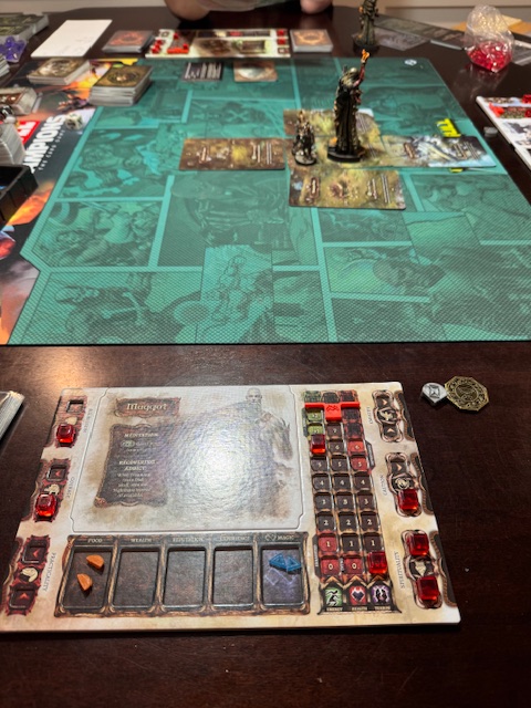 We reset and played the intro game again. It went better as we had the rules down better, we had watched a recommended video, and I watched with care. I found myself playing the role of a rules lawyer, to my surprise, as James and Richard, as usual, rushed through things, and I insisted we follow the process. Also, despite being cooperative, Richard was driving to get resources for himself and upgrading his character’s abilities. But that meant I could move the stories forward, and since I was playing a druid, it just seemed right.