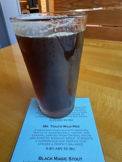 We stopped about 2 when we had completed another quest. We will pick this up and play the following story when I return from my travels in June. After we put most of the game away (it has a save process that allows it to be picked back up at the point where we stopped), I headed out. I parked Air VW the Gray near the Broadway Grill in SE Portland. There, I had two excellent local beers named for the Disneyland ride, Mr. Toad’s Wild Ride. I had the East Coast Meatball Calzone, which at first seemed like chicken instead, but it turned out to be actually sliced meatballs. No red sauce is included in the calzone (meatballs, green peppers, onions, and cheese), but it is served with hot red sauce in a soup cup, and I dipped my bready calzone in it. Excellent, but a caloric disaster.