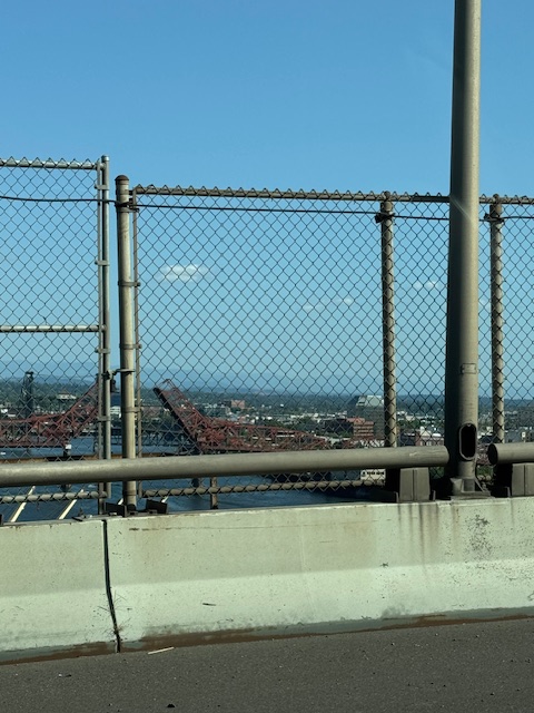 I returned to the EV and, with the blog posted and my headache better (food, beer, and water helped), I headed home. I got to enjoy the bridge for twenty minutes and watched a navy ship moved down the river by tugs under all the bridges. I managed to take a picture of the bridges all up, but traffic started to move, and a pic of the navy ship was not possible. The bridge bouncing a few times when large trucks moved convinced me to keep moving!