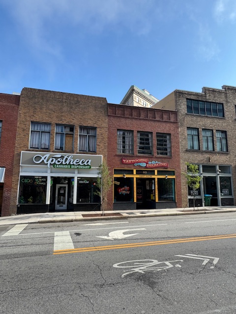 With food inside me and fueled with lots of coffee, I boarded Air Ford Bronco, bags loaded and double-checked that everything was in the bags, and soon found the tourist or shopping area in Asheville. I located the post office and the parking lot I saw on the map and parked there. It is a garage and would keep the cargo cool. I did not want to bake my bags and computer!