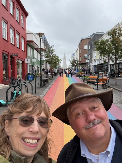 Next, we spoke with Daniel, the helpful desk person who spoke perfect English. He told us he was Hungarian, adding that many drivers and other staff members are not native Icelandic speakers. He suggested a walk and we followed his advice. We headed to the famous church on Rainbow Street.