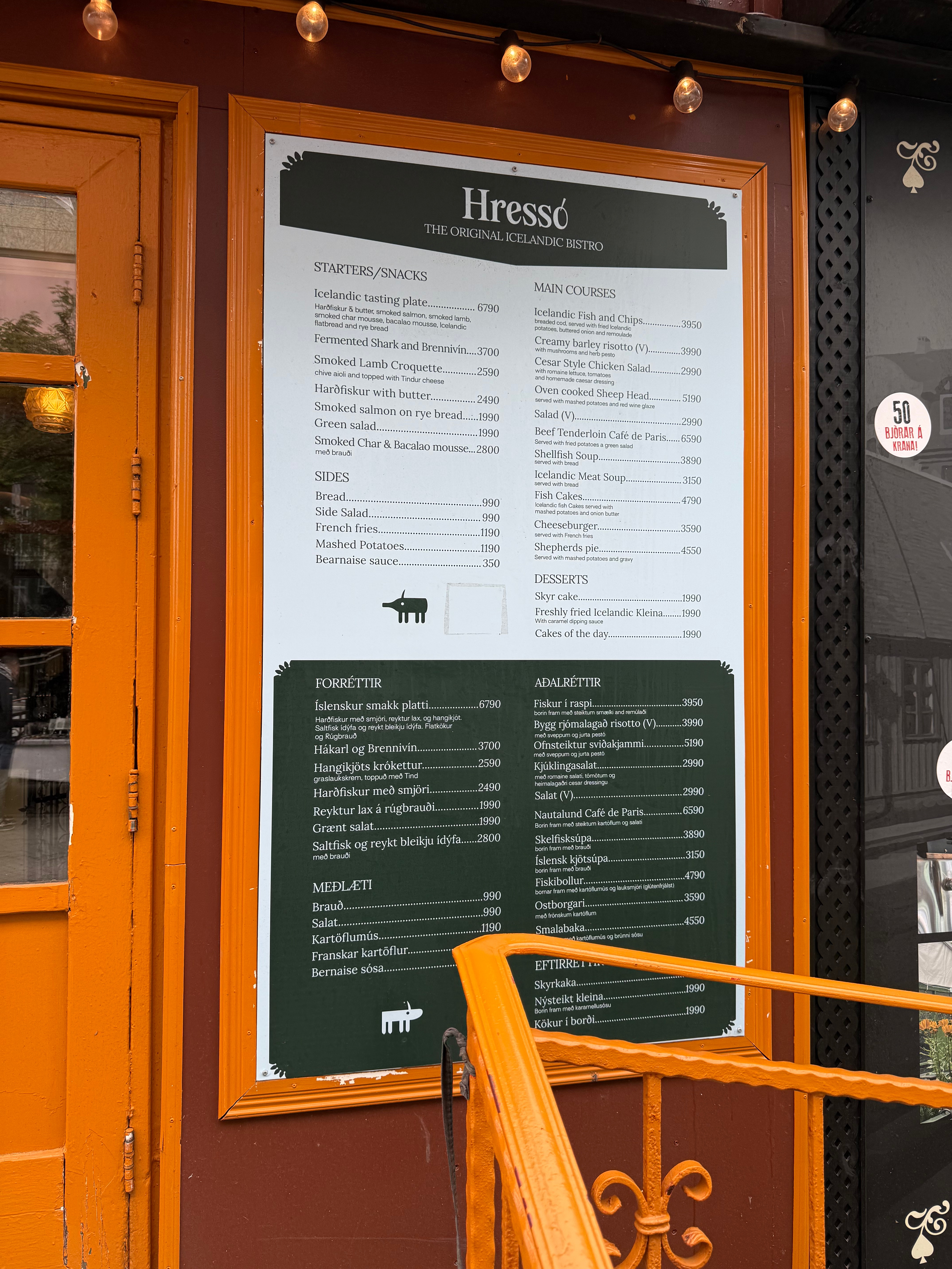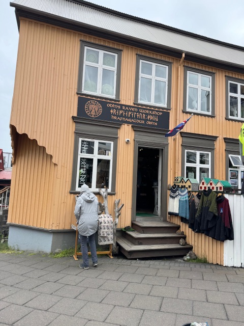 We walked uphill to the famous church, often stopping to browse the bookstore and tourist shops. Odin’s was especially good, offering products a step above the usual tourist fare, and we will return to it. We also saw many places to eat, including a Thai restaurant. Baked sheep’s head was available in one food joint — not something I would order.
