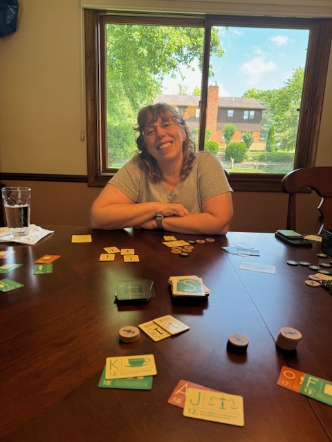 Next, Liam and Donovan joined Deborha and me for the Chicago EL Transit Adventure Game with Liam doing the teaching. We soon started the game, a worker placement game that was a bit mean, and exploring Chicago’s subway was interesting. I rode it on my last trip to and from the airport. Liam was steps from winning (Deborah taking a beating) when Donovan quietly won the fast game. A rematch is needed.