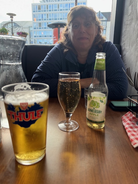 Dinner was as planned, at 101 Bistro, only a few minutes away. We had the lamb platter, and Deborah again ordered the fish and chips. We shared our plates, and the food was perfectly prepared and wonderful. Deborah had a cider from Denmark, and I had a local pilsner, which was good, but pilsners can be plain, and this one was.