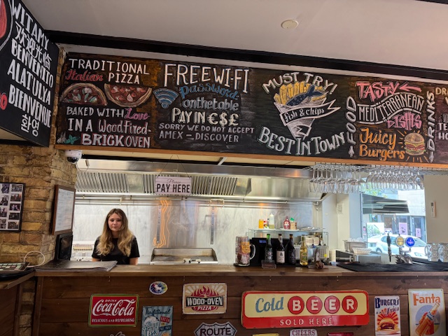 We then went on to find dinner. We saw many excellent choices, but they were expensive and often did not take walk-ins. We finally decided on The Laundromat. It was a food joint we had heard about and I had read about. Deborah had the fish and chips while I tried the salmon. Both were good, and we shared our plates. Deborah had ‘picked wisely’ and had the better meal. The place felt like a college food place and was filled with books. We used a QR code and then placed our order online. It worked well.