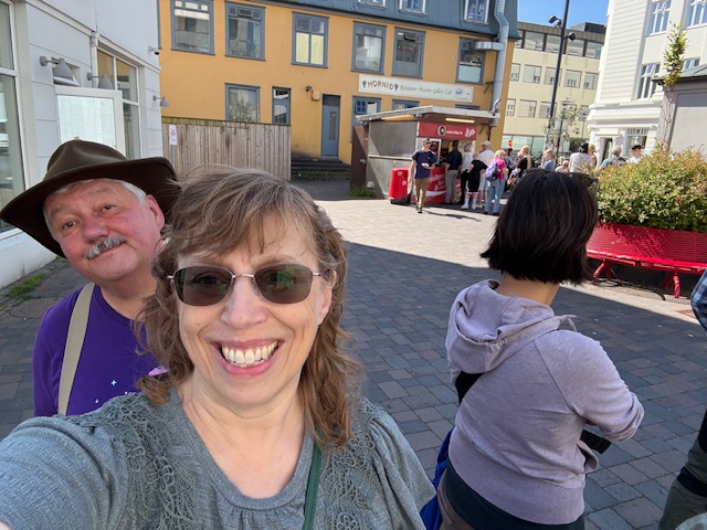 We travel early on Tuesday and arrive in the USA in the morning. We did not have to rise early on Monday; we slept in and lollygagged until around 9:00, cleaned up and dressed, located breakfast, and consumed a familiar repast. We later went out to Reykjavik in the early afternoon. We stopped by a pharmacy and then located the famous hot dog stand, only to find another long line again, but this time we waited.