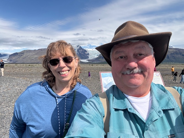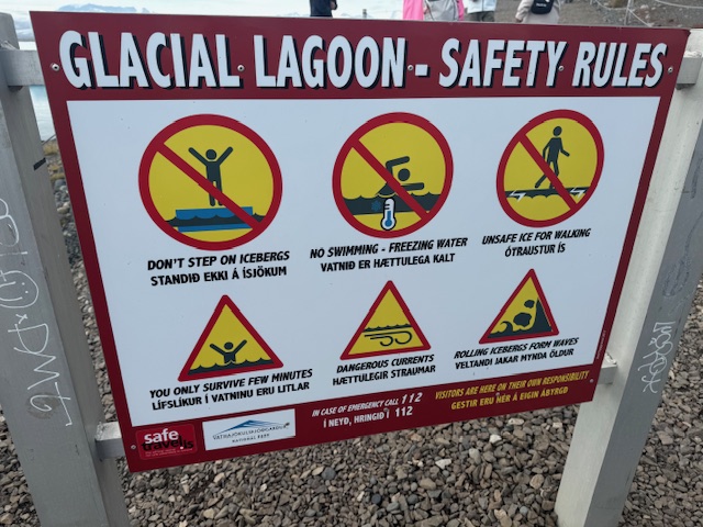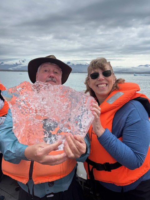 Hours later, after buying sandwiches at the Vik Quick-mark like store for lunch, we arrived at the Iceberg Lagoon, and it was spectacular. Our driver had arranged for a tour in a truck/boat (for an extra cost), we call them Duck Tours, that was slightly delayed, but we got off soon enough. Deborah and I, getting warm from the sun, took off our coats, and that made us a bit cold. The cold rain made that worse. I retrieved the coats and we were better.