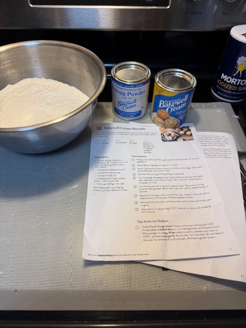 I rose early, but Monday was almost without plans. I had only a Pathfinder game (a game based on an early version of Dungeons and Dragons that went a different direction) in the early evening. Instead of starting the blog, I decided to make biscuits from scratch and make scrambled eggs with some ham. I’ve used up most of my flour (I need to order more King Arthur flour). I have Bakewell cream and baking powder, and I used those ingredients in the recipe. I had to chill some milk as I use only shelf-stable milk. Deborah got pictures as I went.