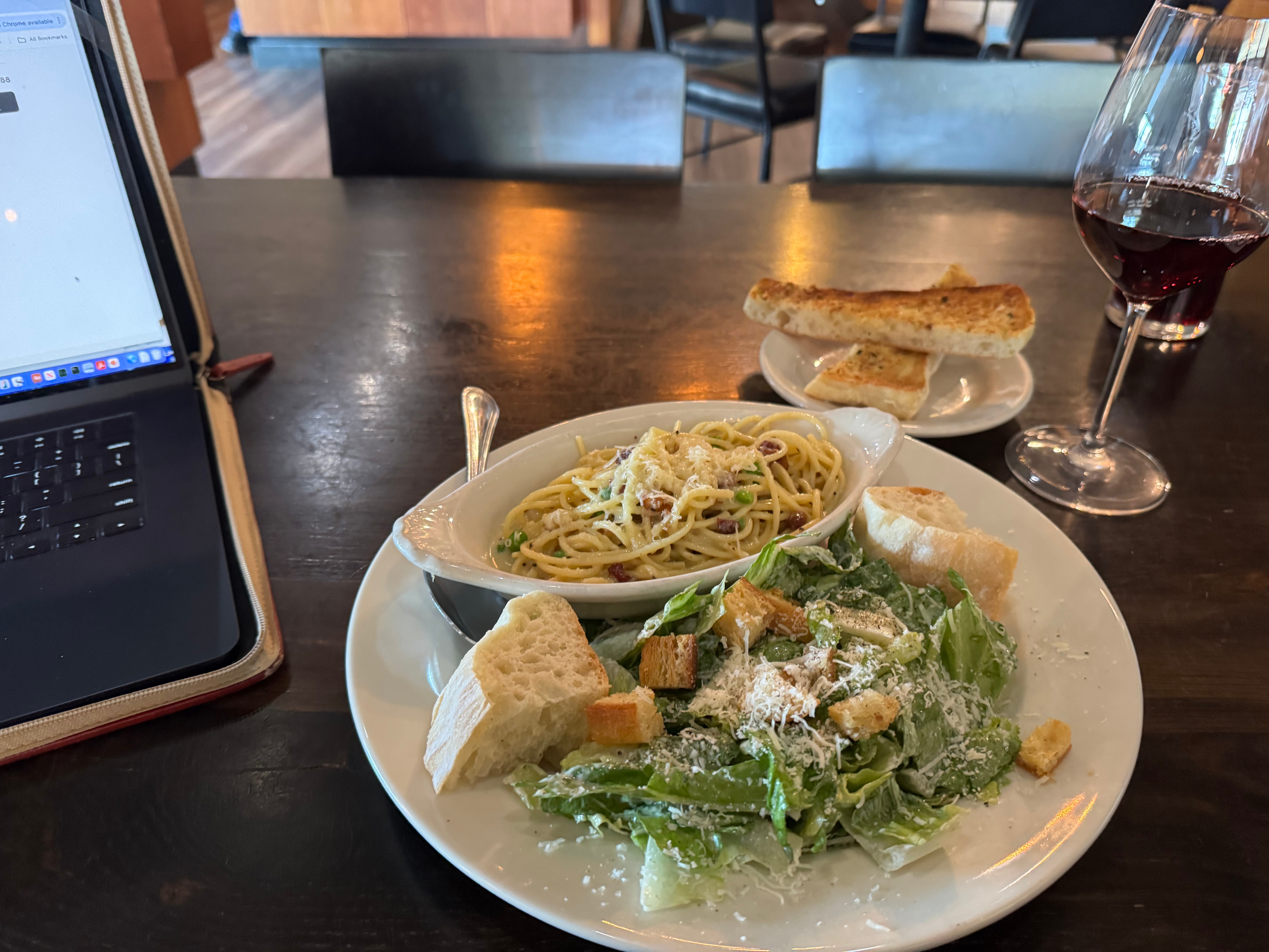 There were spare tables, so I didn’t mind being invested for some time at Pastini, but I needed to be home for the repair person for The Machine, which was now leaking water when running. Ugh! The repair had broken or loosened something.