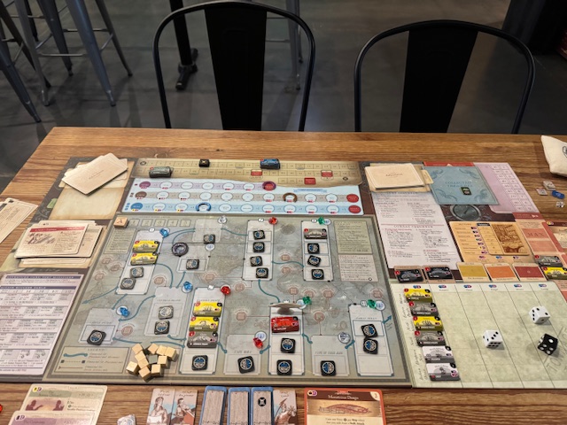 Every roll and test I failed in the game takes some time to set up. I managed to get to the end before repeated bad rolls had the crew, Nemo, and the Nautilus in bad shape. I failed another test, and the damage was enough to end Nemo and the crew. Ugh! The solo game is challenging to win, but it’s even more frustrating not to finish. Next time!