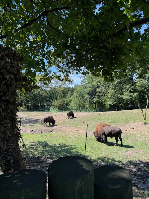 It is a small and happy zoo. The animals looked well, and the glass was so clean that when the mountain lion passed within a few feet of me, I jumped back as it looked at me! A giant aviary with a slow spiral up and back down path, which walked you through the trees, was a surprise. Sea lions are at the center of the park, and they were barking and seemed to enjoy posing for photographs. The fluffy cows (bison) were set far back to prevent anyone from petting them (terrible idea).