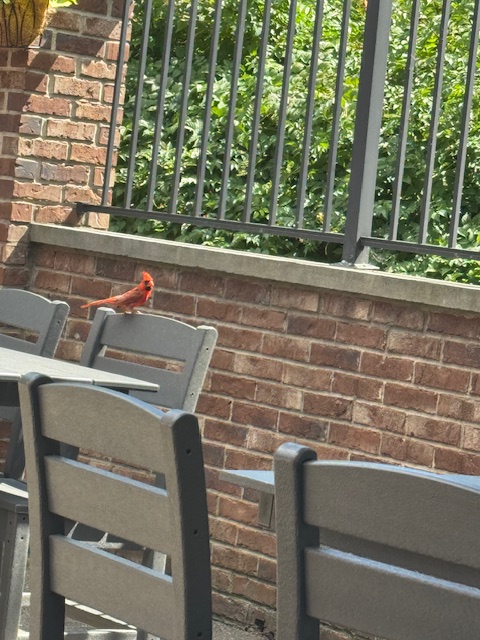 A cardinal, a red bird, lands in the area, and it looks like summer is still going strong. A yellow jacket reminds us that we are outside, but only one appears, and it can be easily waved away. We chat with a manager, and Deborah’s birthday, on 19 October, is available, with a cost of $12 per person for pizza and soft drinks, which seems fair. Deborah will check with a few folks, but it looks like we have a site for the Party now, the Red Ox patio (they have heaters).