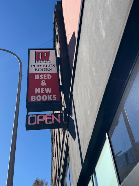 Plugged in, I head to Powell’s and walk through the store. I ask for help and learn that they do not have any of the 1920s crime novels I am looking for. These are before China became the focus of crime novels of the 1920s-30s. I wanted to see how well the villains match Sax Rohmer’s text. But they had none, and I just wondered and found nothing today except a cheap math book, I think I could use — I could risk $6 on it. I was also tired from the blood donation and could not focus. I did find plenty of new postcards and cards, and soon checked out.